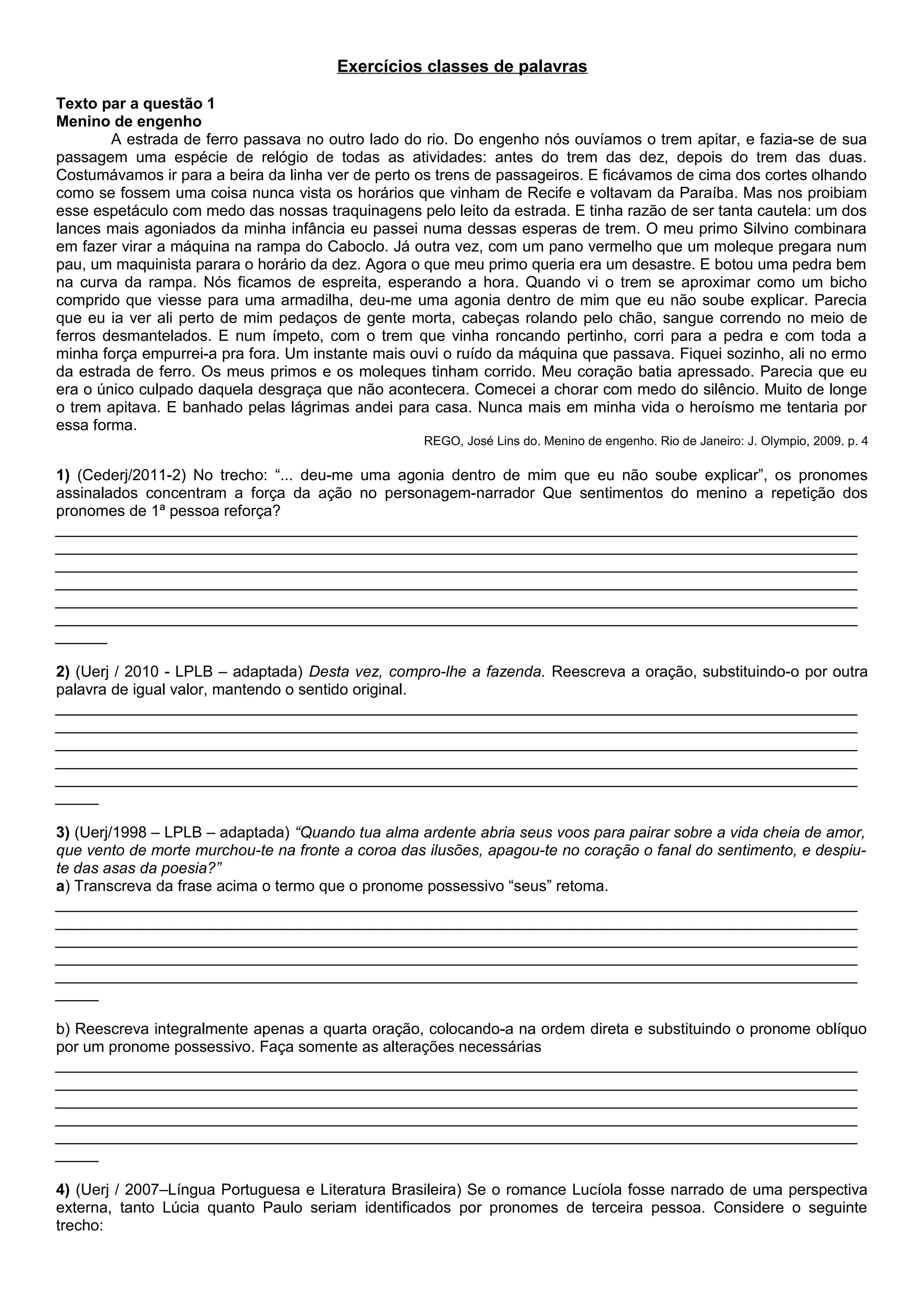 1) (Cederj/2011-2) No trecho: “... deu-me uma agonia dentro de mim que eu não soube explicar”, os pronomes