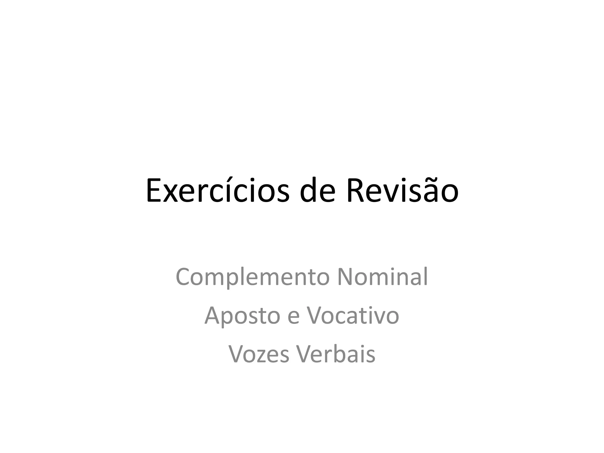 2) Há também exercícios sobre vozes verbais e complementos nominais.