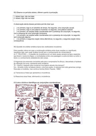 O documento é um conjunto de exercícios de português para alunos do 2o ano do ensino médio prepararem-se para simulados e provas do 1o trimestre de 2012. A professora Marisa Bessa pede aos alunos que façam os exercícios com dedicação para terem bom desempenho nas avaliações.