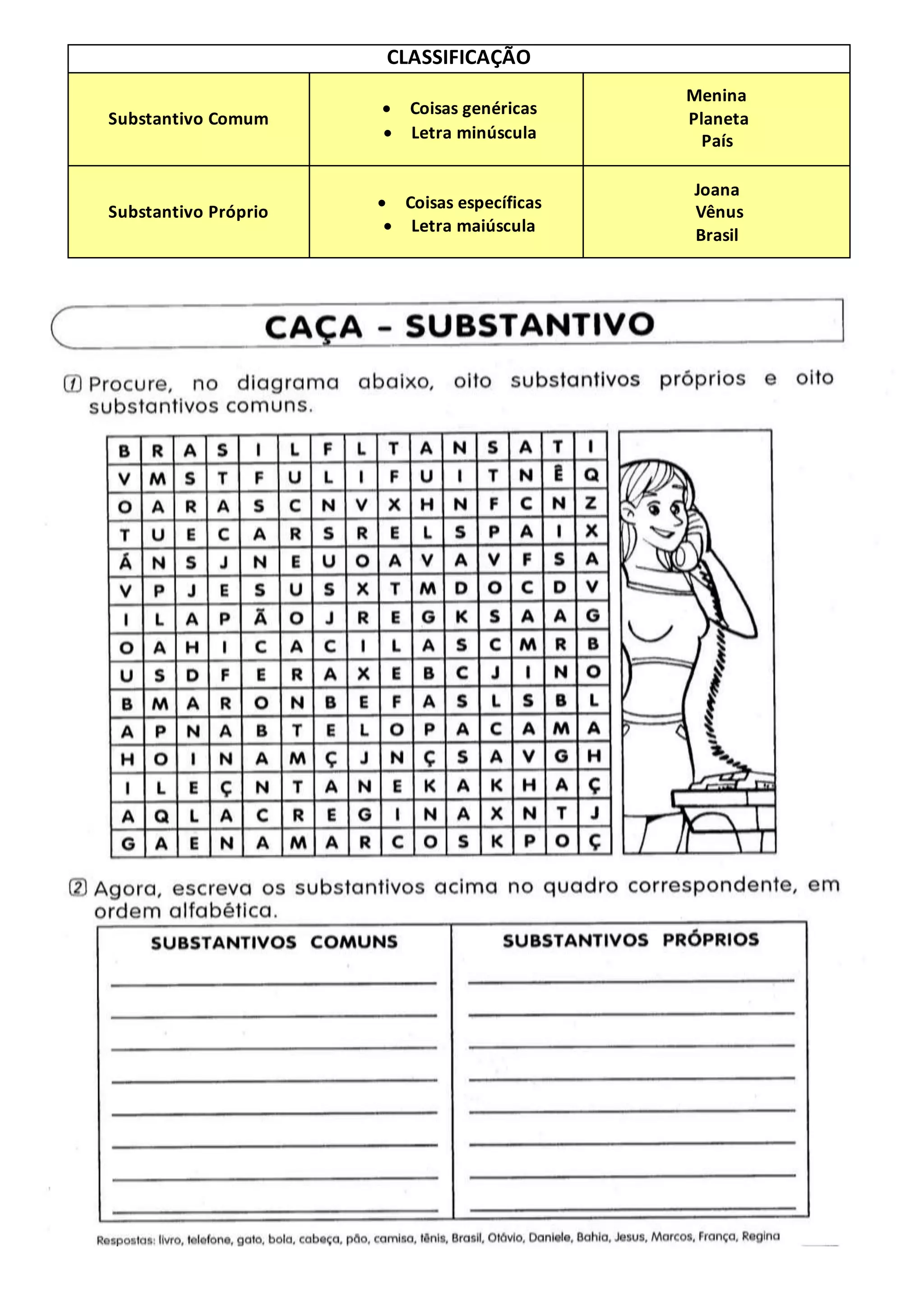 Substantivo comum: ............................., ..............................................