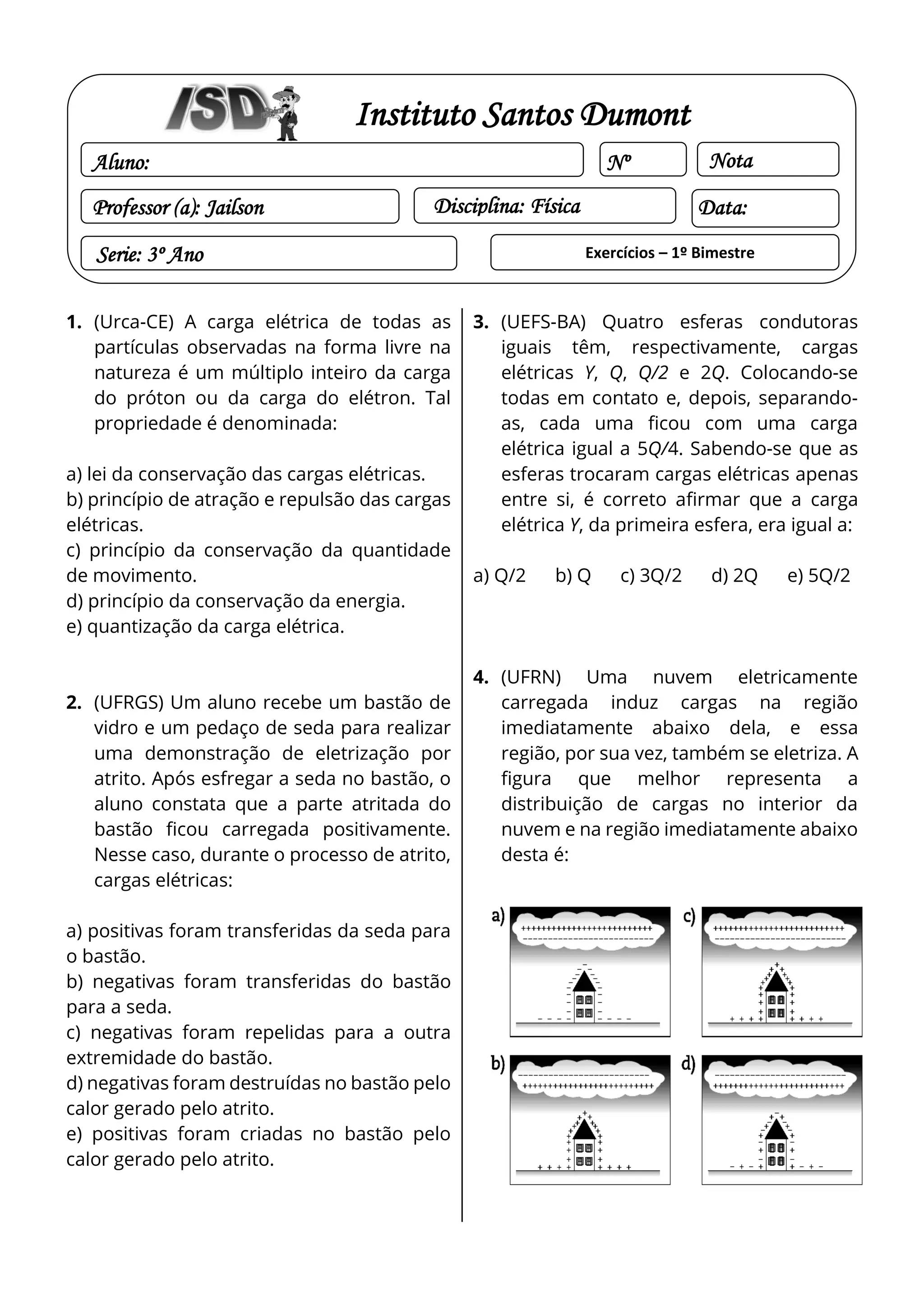 1. A carga elétrica de todas as partículas observadas na natureza é sempre um múltiplo inteiro da carga do próton ou elétron. Isso é denominado quantização da carga elétrica.