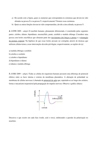 1) O documento discute o sistema nervoso central e suas partes, funções e lesões.