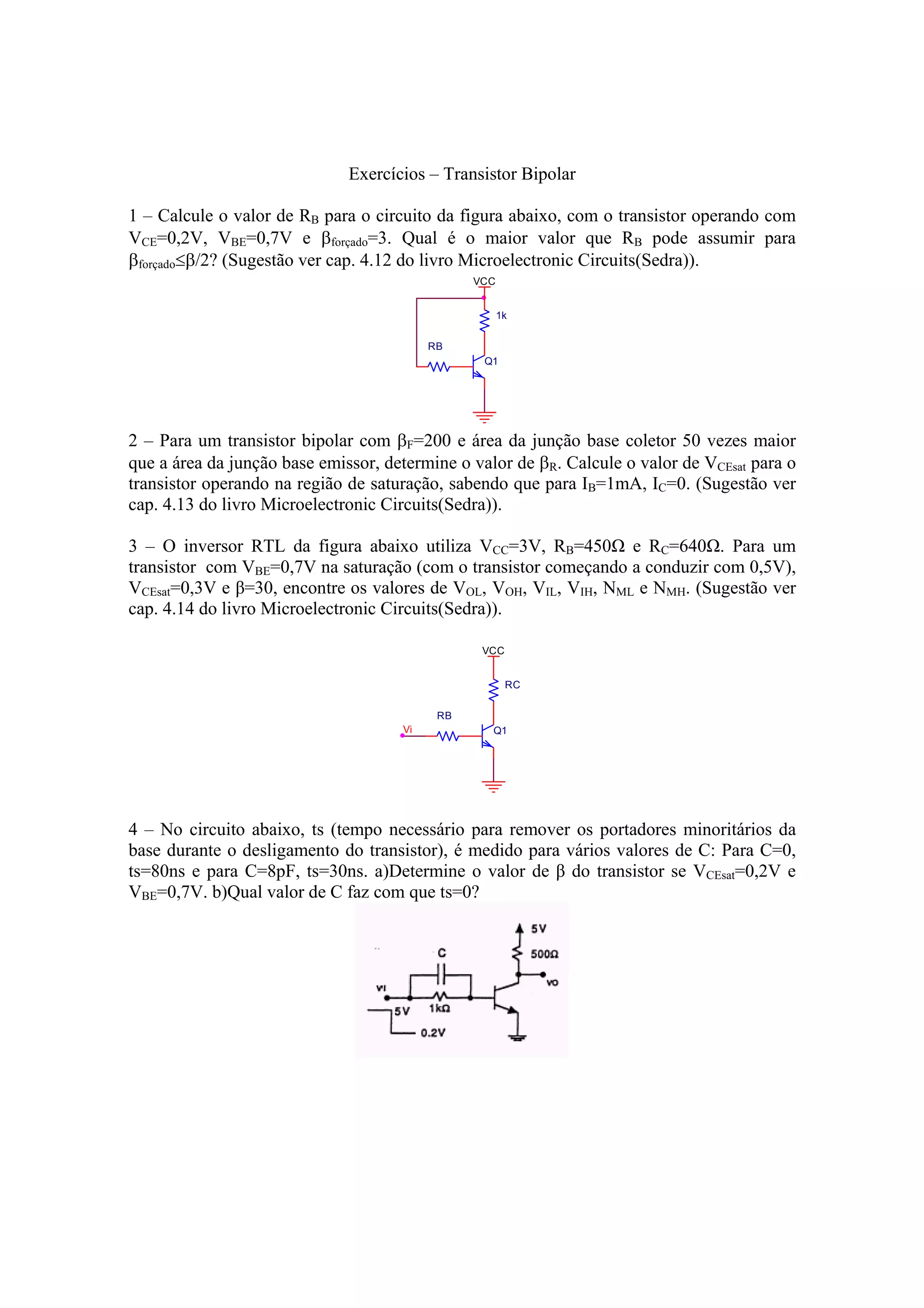 1) RB deve ser igual a 1kΩ para manter βforçado≤β/2.