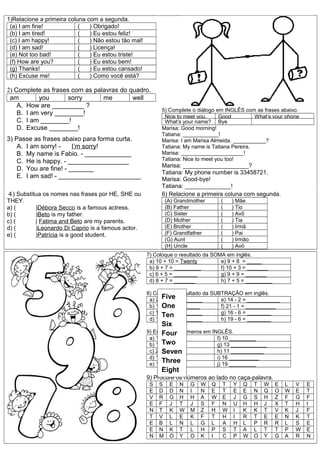 5) Complete o diálogo em INGLÊS com as frases abaixo.