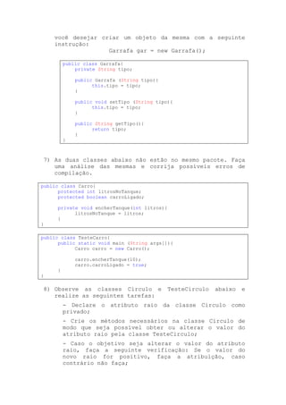 3) Na instrução Computador computador = new Computador(); a classe é Computador, o objeto é computador, o construtor é Computador() e a operação de instanciação é new Computador().