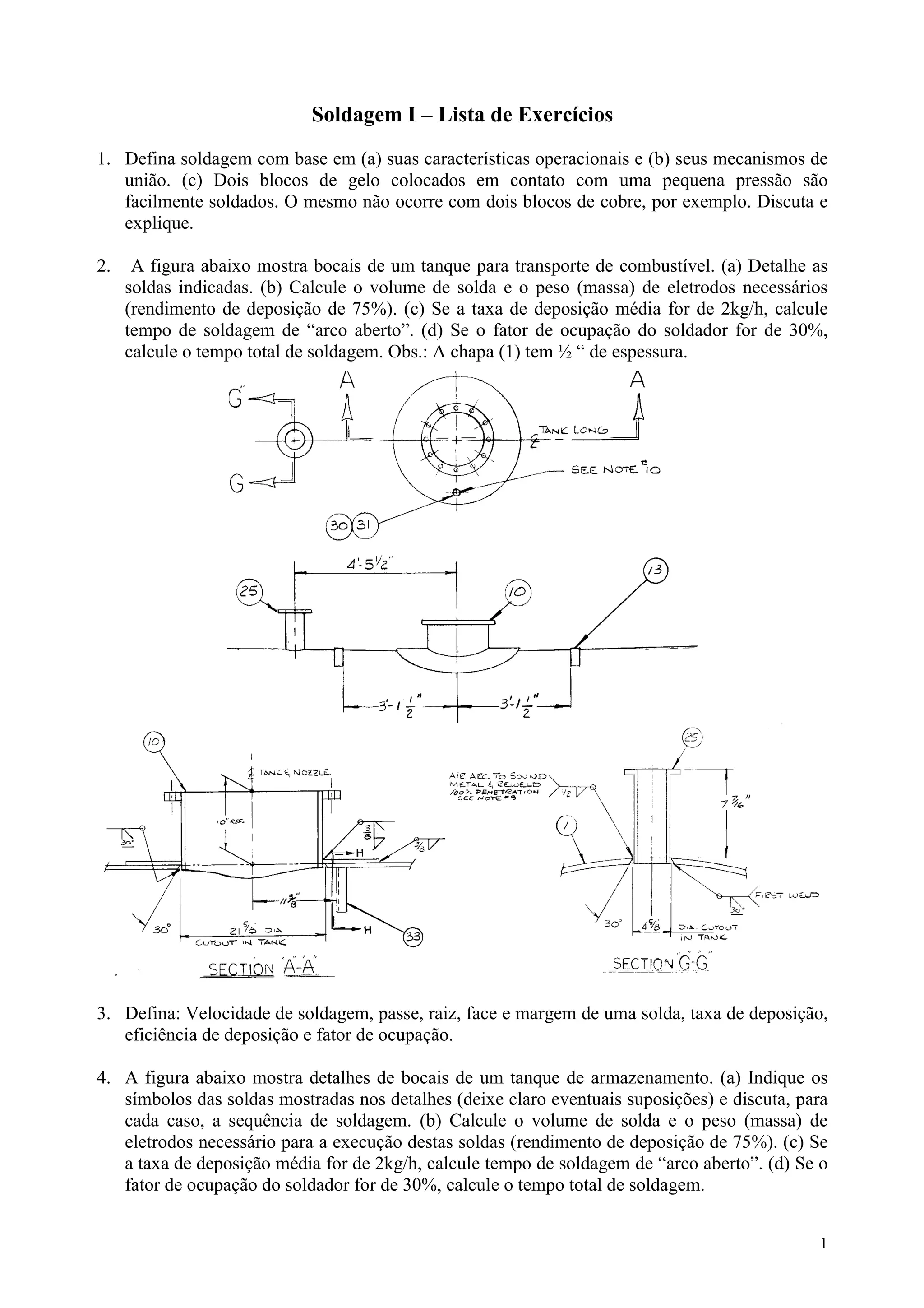 Soldagem I –Lista de Exercícios