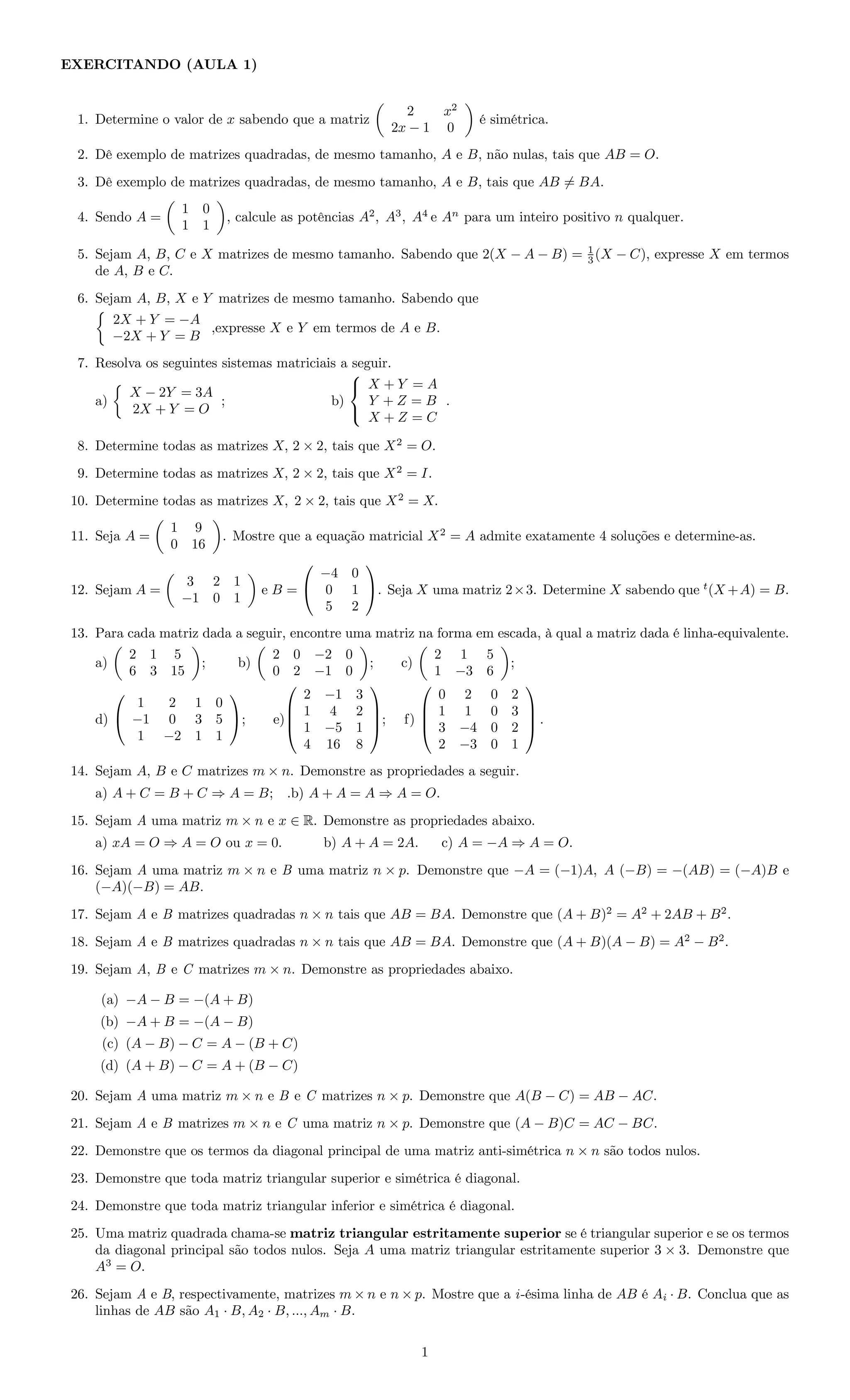 10. Determine todas as matrizes X, 2 × 2, tais que X2