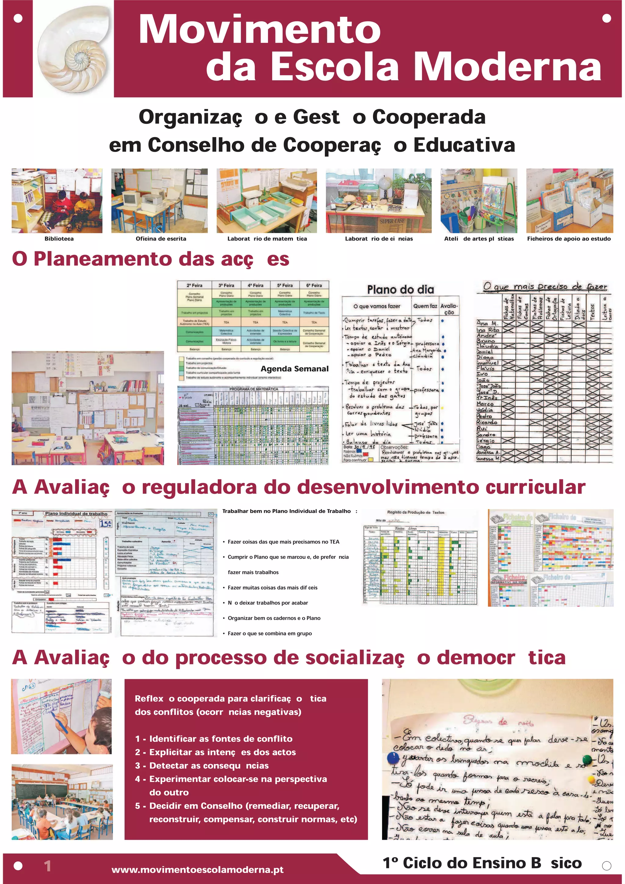 1) O documento descreve a organização e gestão de uma escola moderna com ênfase na aprendizagem cooperativa em projetos, laboratórios e trabalho autônomo com acompanhamento individual.