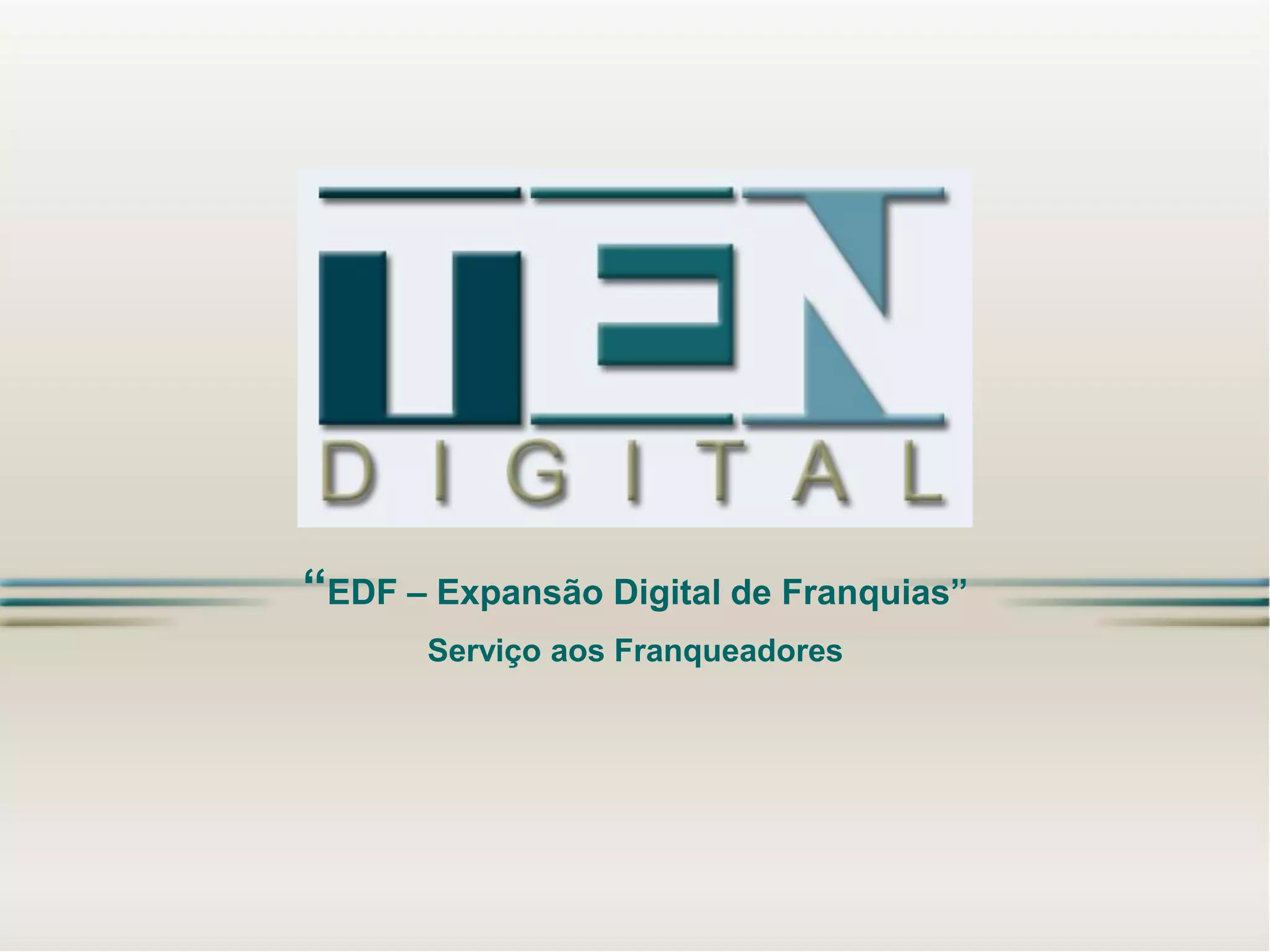 O serviço EDF oferece prospecção de franqueados na internet e pré-qualificação virtual de candidatos para ajudar franqueadores a expandirem suas redes. Há dois pacotes, Prata e Ouro, que variam no tempo dedicado diariamente e em serviços como entrevistas virtuais e relatórios. Os benefícios incluem mapear candidatos no LinkedIn, organizar dados no Social CRM e aumentar taxas de conversão.