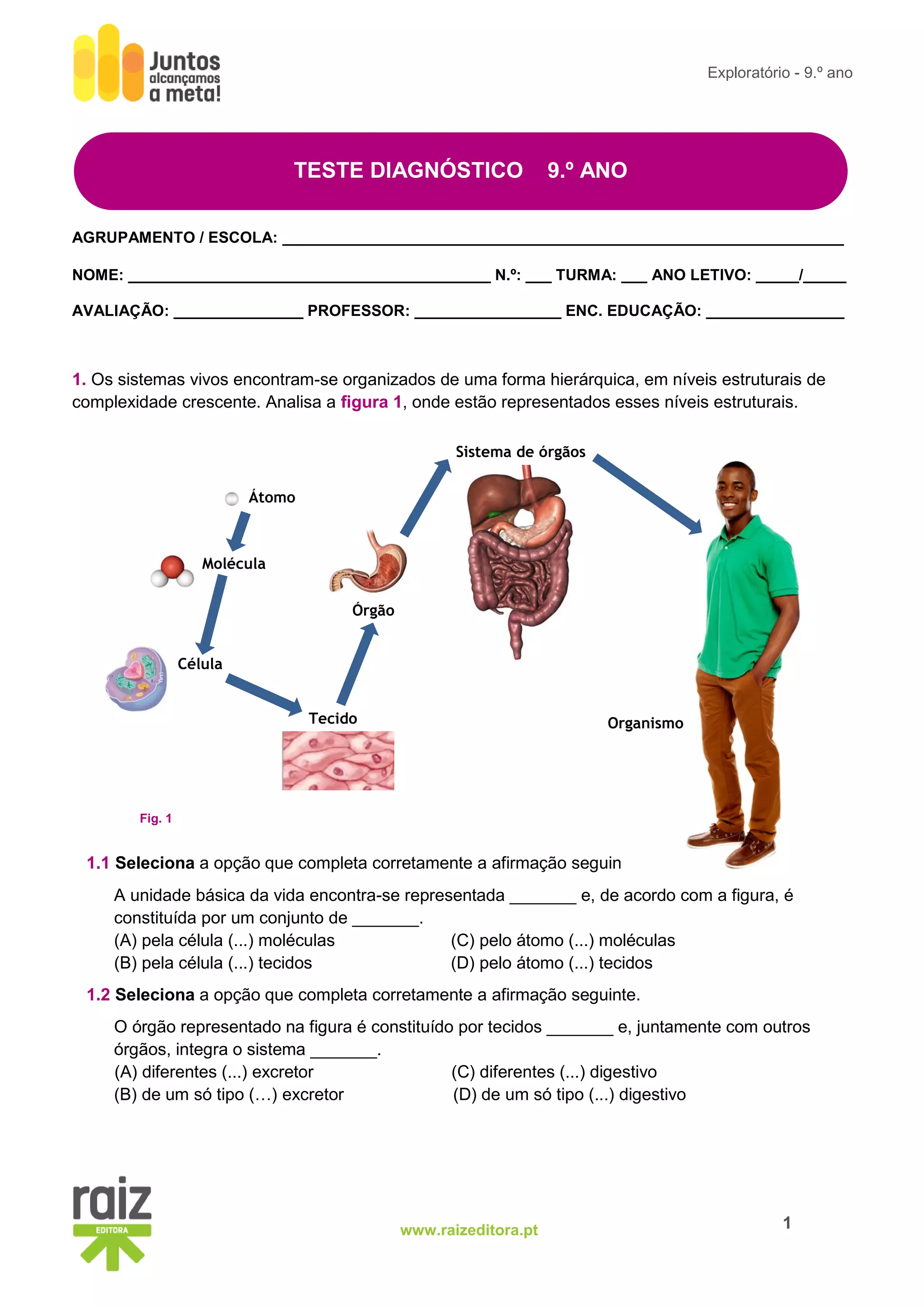 1.3 O equilíbrio do organismo está dependente do bom funcionamento dos seus sistemas, órgãos e