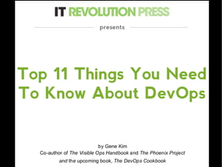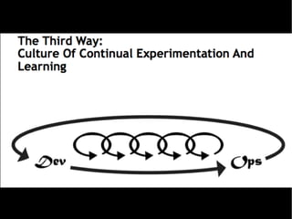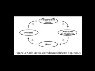 O documento explica os conceitos e origens do movimento DevOps, destacando três princípios fundamentais: cultura de colaboração, automação de tarefas manuais e métricas de tudo. Também apresenta exemplos de ferramentas e práticas DevOps implementadas em diferentes organizações.