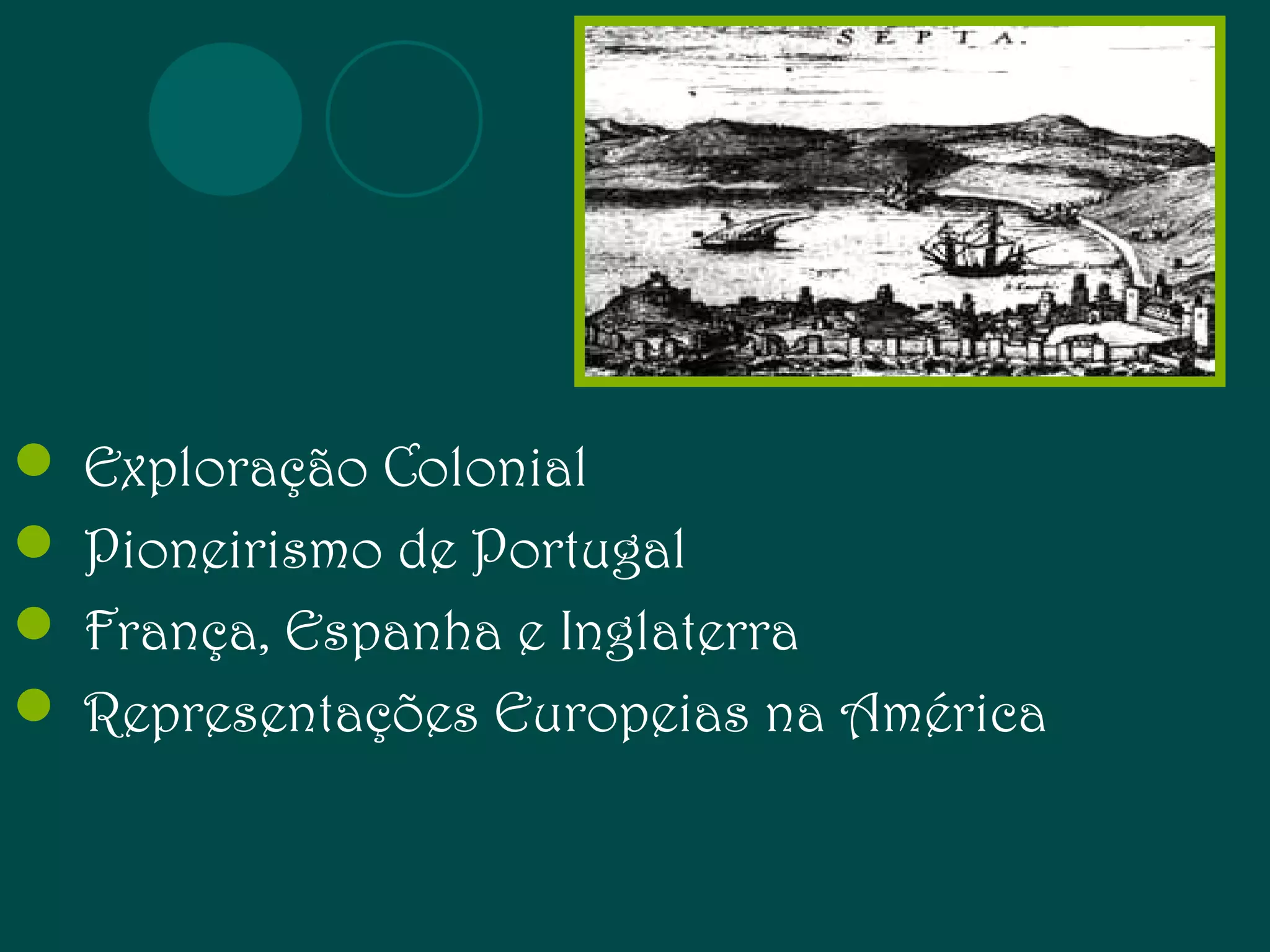 O documento discute a exploração colonial europeia na América, com foco em Portugal, Espanha, França e Inglaterra. O sistema colonial era baseado na complementaridade econômica e no monopólio comercial das metrópoles sobre as colônias. Portugal liderou a expansão marítima inicial no século 15 devido à sua posição geográfica e ao apoio real à navegação.