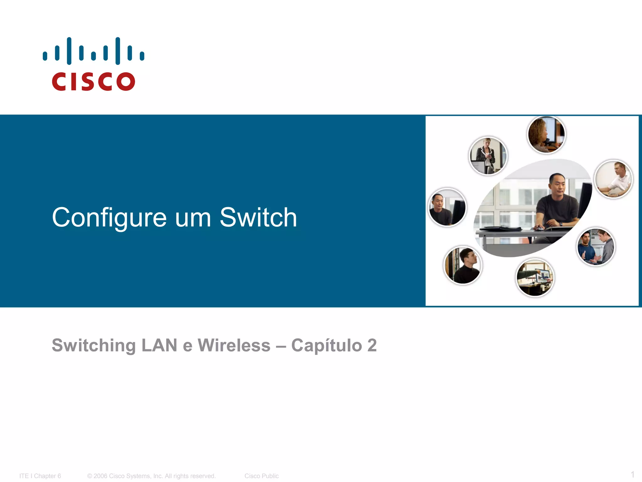 O documento descreve como configurar switches Cisco, incluindo resumos sobre operação Ethernet, considerações para projeto de rede, funções de encaminhamento, comandos CLI e configurações básicas de segurança.