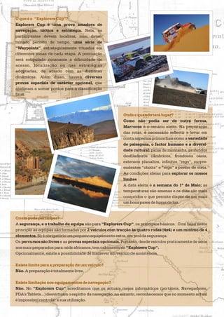 Explorers Cup" é uma prova amadora de navegação e estratégia em Marrocos onde os participantes devem localizar uma série de pontos de referência para ganhar pontos. A prova ocorrerá na primeira semana de Maio no deserto de Marrocos e é aberta a veículos 4x4 de dois ou mais participantes. A inscrição inclui transporte, alojamento e equipamento necessário para a competição.