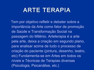 1 - A arte terapia utiliza a arte como forma de promover saúde mental e transformação social.
