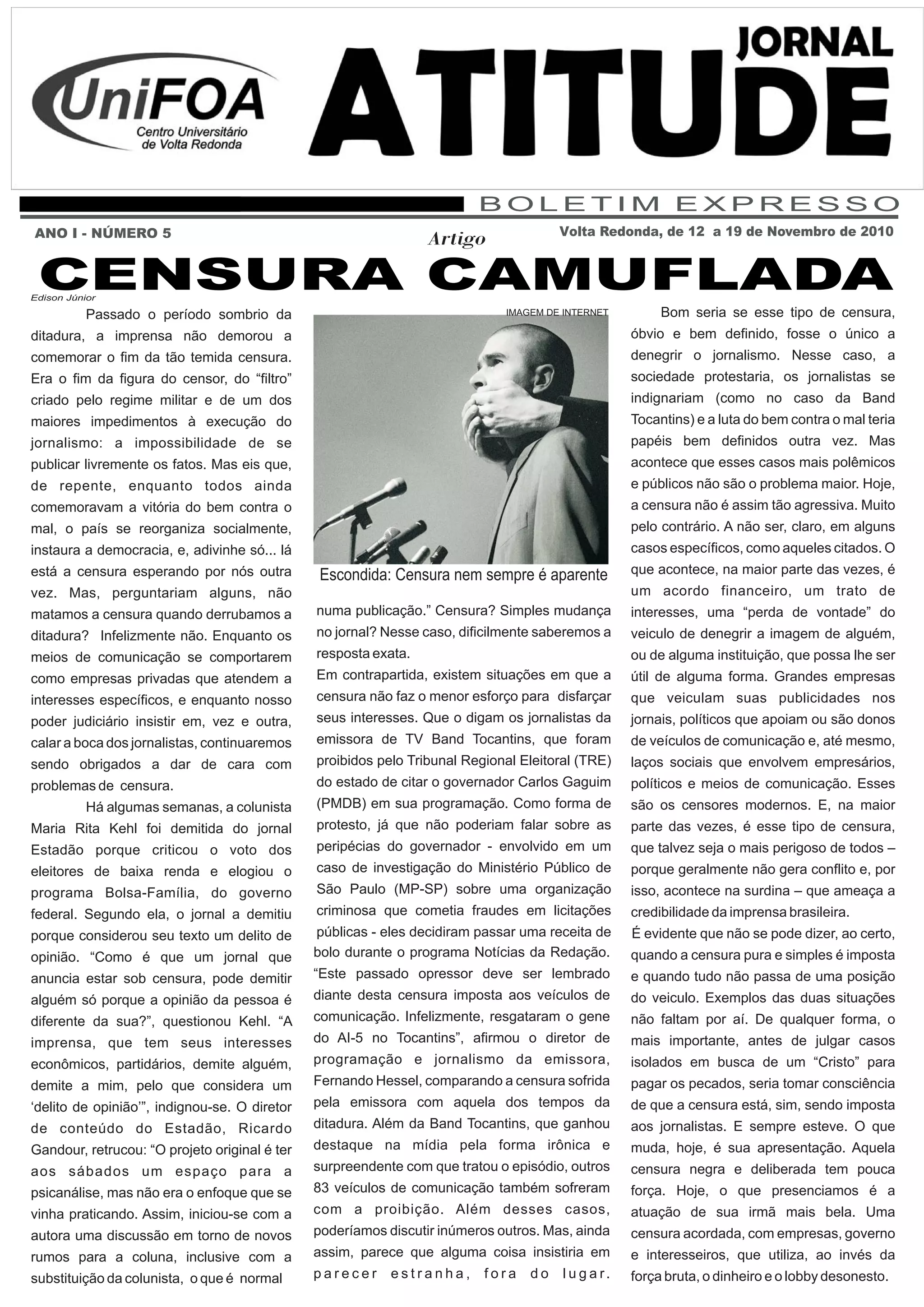 ANO I- NÚMERO 5 Artigo Volta Redonda, de 12 a 19 de Novembro de 2010