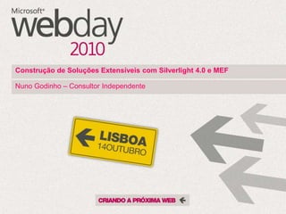 O documento discute como construir soluções extensíveis em Silverlight 4.0 usando o MEF (Managed Extensibility Framework). Apresenta os conceitos-chave do MEF e demonstra como ele pode ser usado com MVVM para injetar view models, tornar view models extensíveis, descobrir e carregar dinamicamente módulos XAP e agregar eventos entre módulos.