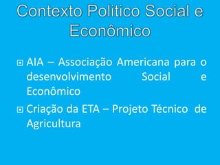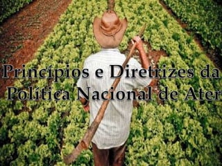 O documento discute a história e situação atual da assistência técnica e extensão rural no Brasil. Apresenta os principais marcos da criação de instituições de ATER no país desde a década de 1940 e destaca os desafios atuais como a falta de recursos e servidores para atender a grande demanda dos agricultores familiares.