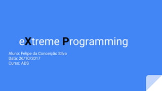 O documento resume os princípios e práticas da metodologia de desenvolvimento ágil Extreme Programming (XP). O XP tem como objetivos levar ao extremo boas práticas de engenharia de software, como testes constantes, revisões frequentes e desenvolvimento incremental. Os valores fundamentais do XP incluem comunicação, simplicidade, feedback rápido e respeito. As principais práticas são programação em pares, propriedade coletiva do código, desenvolvimento guiado por testes e integração contínua.