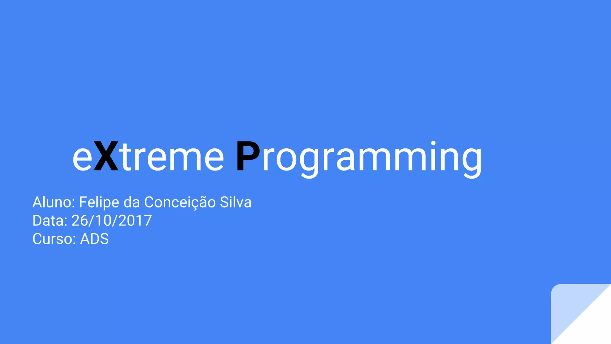 O documento resume os princípios e práticas da metodologia de desenvolvimento ágil Extreme Programming (XP). O XP tem como objetivos levar ao extremo boas práticas de engenharia de software, como testes constantes, revisões frequentes e desenvolvimento incremental. Os valores fundamentais do XP incluem comunicação, simplicidade, feedback rápido e respeito. As principais práticas são programação em pares, propriedade coletiva do código, desenvolvimento guiado por testes e integração contínua.