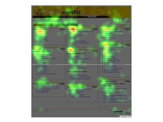 [1] O documento discute a história e os métodos de rastreamento ocular, incluindo os primeiros métodos invasivos e não invasivos. [2] Também descreve os padrões de fixação e sacadas durante a leitura e diferentes tipos de sacadas. [3] Finalmente, resume um estudo que usou rastreamento ocular para analisar os padrões de navegação em sites de portal de duas e três colunas.