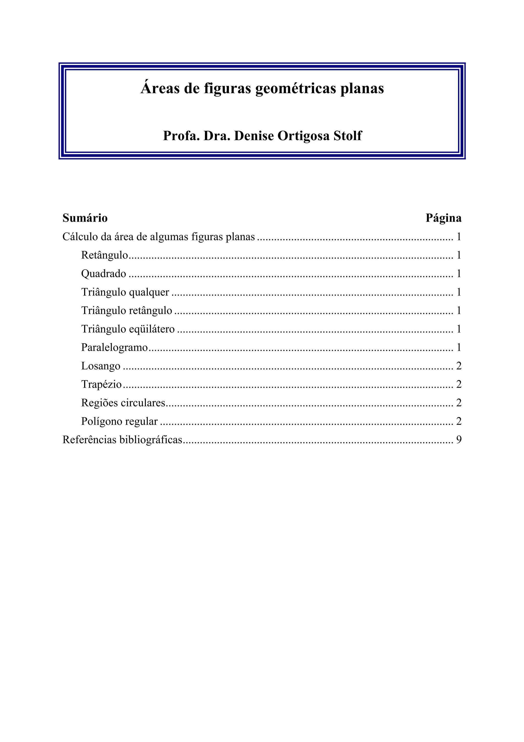 Este documento fornece fórmulas para calcular áreas de figuras geométricas planas como retângulos, quadrados, triângulos, paralelogramos, losangos, trapézios e figuras circulares. Ele também apresenta exercícios resolvidos como exemplos práticos para aplicar essas fórmulas.