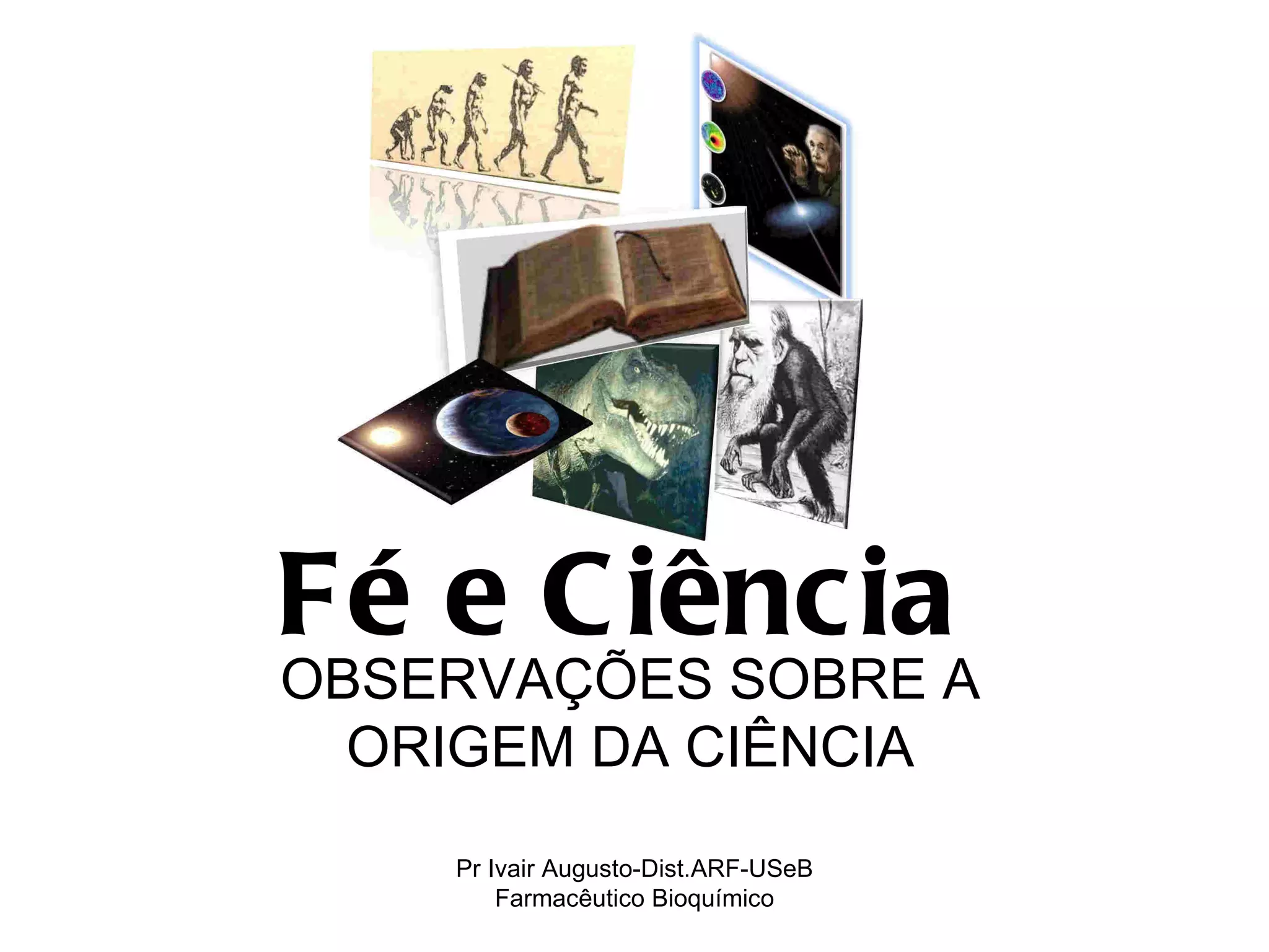 O documento discute a origem da ciência e a relação entre religião e ciência ao longo da história. Apresenta evidências de que o pensamento científico, método científico, tecnologia e raciocínio lógico existiam em civilizações antigas. Também mostra que a ciência floresceu sob o Islã e foi inibida pela Igreja Católica medieval, mas ressurgiu durante a Reforma e o Iluminismo. Grandes cientistas como Newton eram cristãos, indicando que fé e ciência podem co