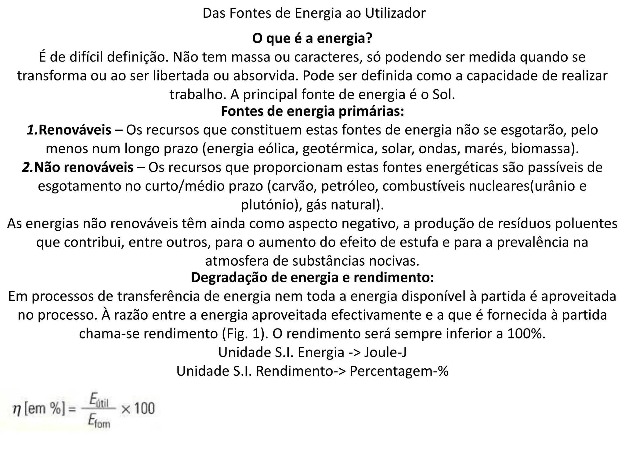 chama-se rendimento (Fig. 1). O rendimento será sempre inferior a 100%.