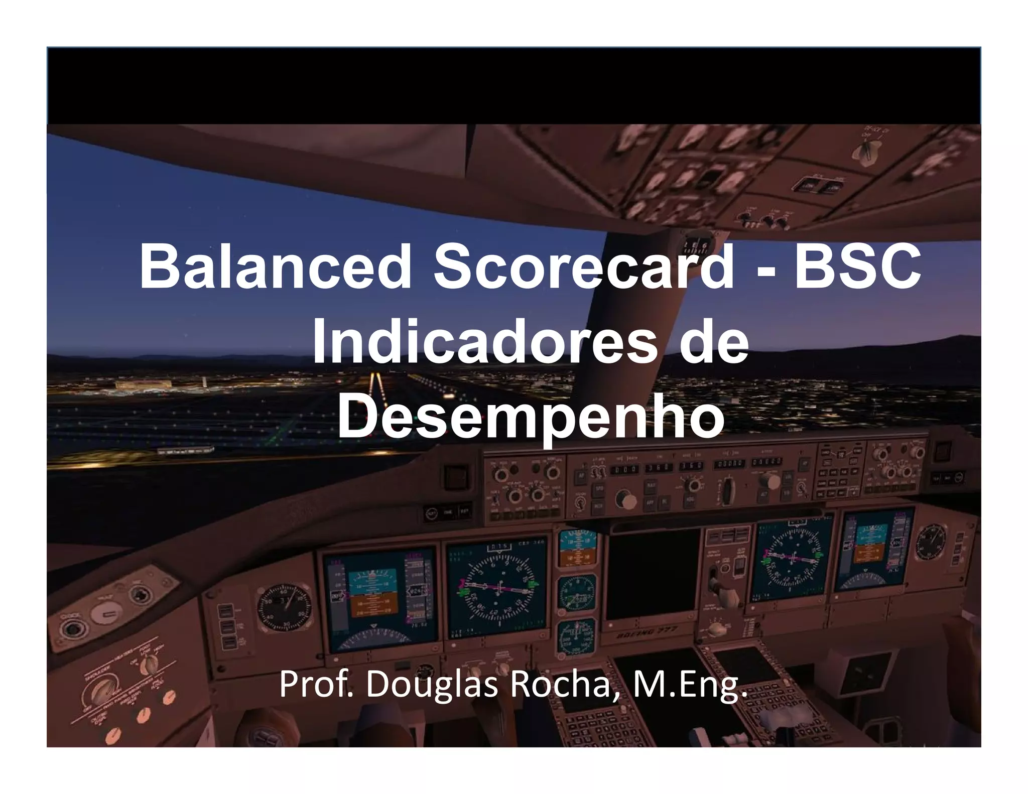Este documento discute o Balanced Scorecard (BSC), um framework para traduzir a estratégia de uma organização em objetivos e indicadores de desempenho. O documento explica os componentes e implementação do BSC, incluindo suas quatro perspectivas (financeira, clientes, processos internos e aprendizado e crescimento), objetivos estratégicos, mapas estratégicos e indicadores. Além disso, discute como o BSC pode ser usado no contexto da gestão estratégica de uma organização.