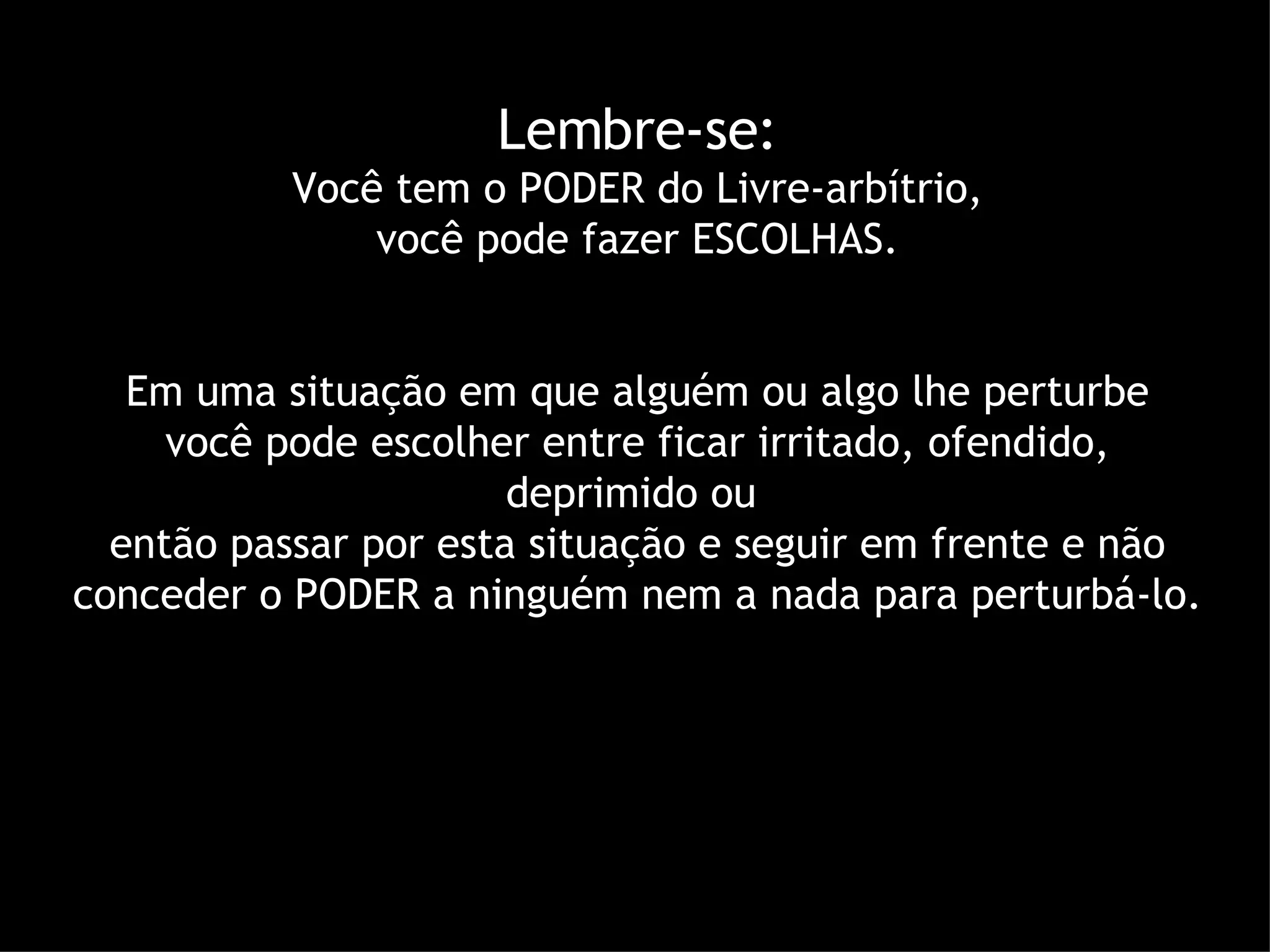 Este documento enfatiza que as pessoas têm livre-arbítrio e podem escolher como reagir a situações perturbadoras, ao invés de se sentirem irritadas ou deprimidas. Também convida o leitor a se inscrever para receber mensagens motivacionais semanais por e-mail.