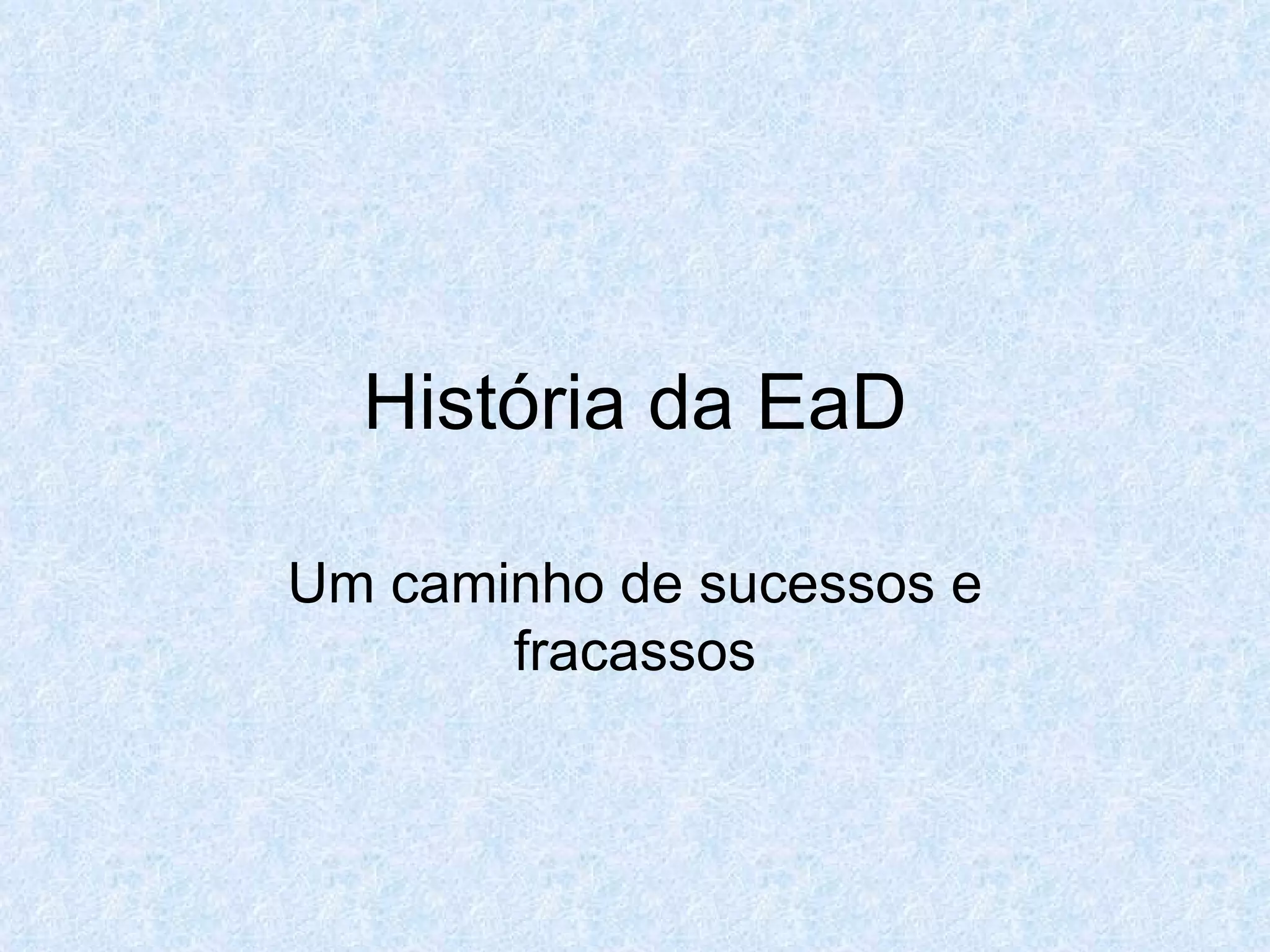A história da educação a distância no Brasil pode ser dividida em três gerações: a primeira utilizou o ensino por correspondência no século XIX, a segunda usou recursos de rádio e TV entre 1960-1990, e a terceira introduziu ambientes interativos online a partir de 1990, tornando os cursos EaD mais acessíveis para a população com a difusão da informática.