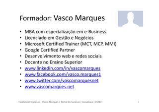 Facebook Empresas |Vasco Marques | Portal do Sucesso | InovaGaia | 01/12