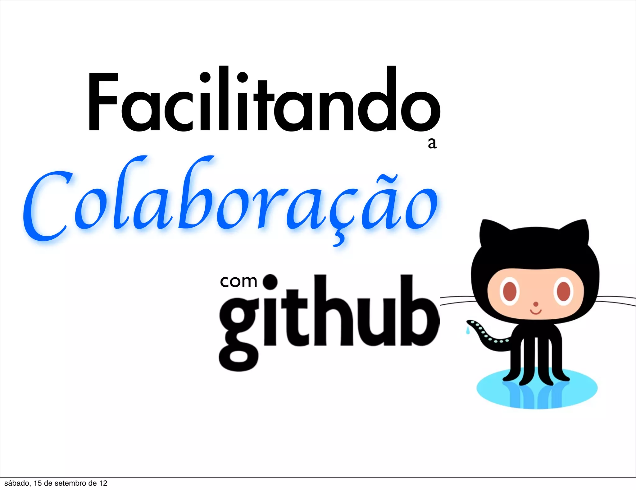 O documento discute o uso do GitHub para facilitar a colaboração em projetos de software de forma distribuída. Ele explica como configurar repositórios no GitHub, fazer fork, pull requests e merge para integrar contribuições de diferentes desenvolvedores.