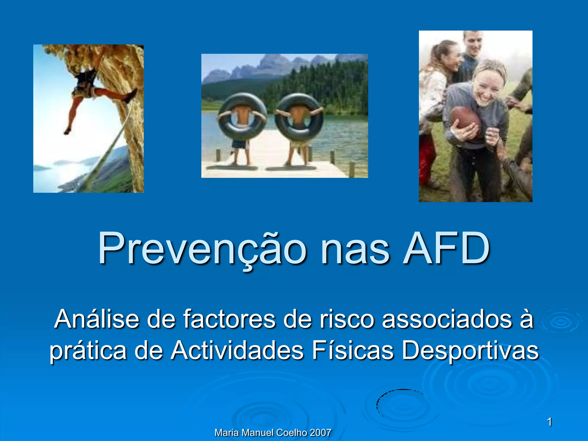 1) O documento analisa fatores de risco associados à prática de atividades físicas desportivas e formas de prevenção de acidentes. 2) Aborda dimensões como equipamentos, regras, características do praticante e enquadramento técnico. 3) Apresenta dados sobre acidentes ocorridos em aulas de educação física, discutindo como uma prática regular e sistemática pode garantir segurança.