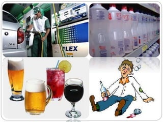 O documento discute a produção e uso do etanol no Brasil. O Brasil é o segundo maior produtor mundial de etanol e usa principalmente cana-de-açúcar como matéria-prima. A gasolina vendida no país contém 25% de etanol. O programa Pró-Álcool incentivou o uso de etanol como combustível nas décadas de 1970 e 1980, mas sua produção caiu depois devido a problemas econômicos e técnicos. Recentemente, o interesse pelo etanol voltou a crescer por preocupações ambientais.