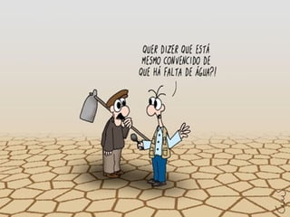 A falta de água ameaça mais da metade da população mundial até 2025, com a Jordânia já racionando água para sua população. Embora o Brasil contenha 20% da água doce do planeta, enfrenta problemas na distribuição para a população. A dessalinização pode ser uma solução para aliviar a escassez de água, mas a produção de alimentos também está ameaçada.