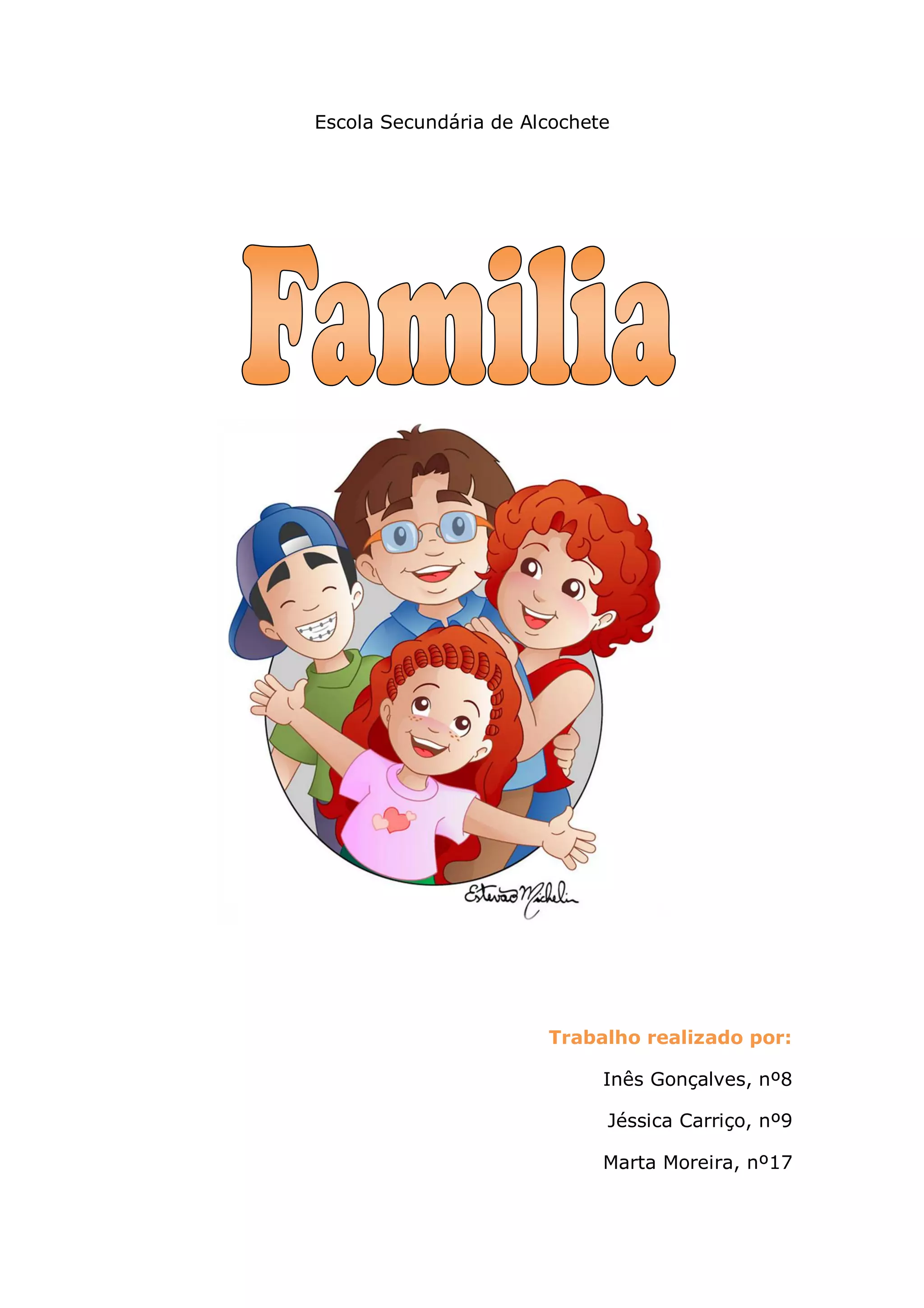 Este documento descreve os diferentes tipos de família, suas funções e como evoluiu ao longo do tempo. Discute famílias nucleares, monoparentais, reconstituídas e homossexuais, além de abordar as funções da família, sua relação com a escola e como mudou da família antiga para a moderna.