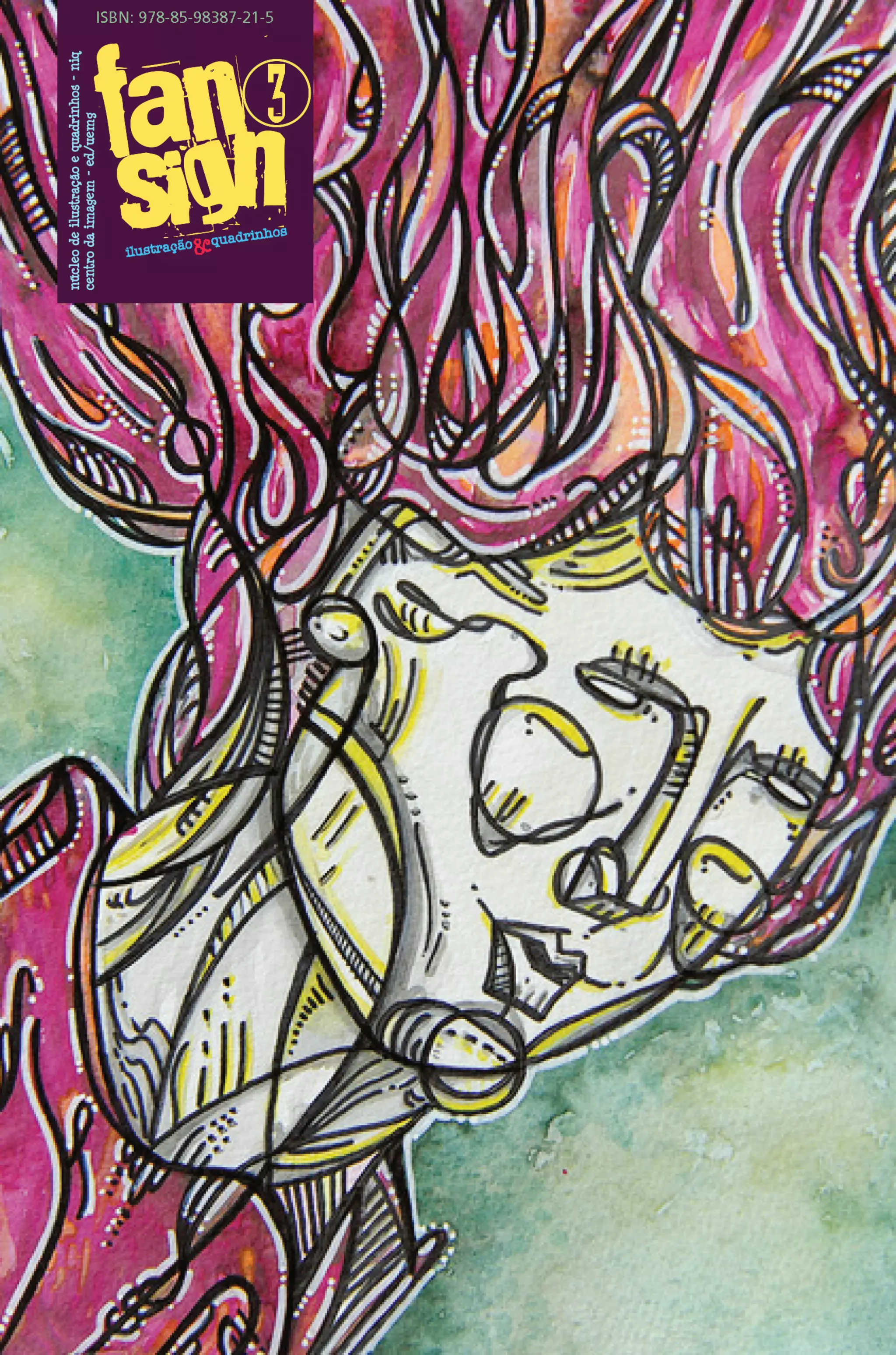 Este documento apresenta a terceira edição da Coleção Fansign, publicada pelo Núcleo de Ilustração e Quadrinhos da UEMG. A nova edição busca ampliar o espaço para reflexão e troca de experiências entre acadêmicos e a comunidade externa. A publicação contém trabalhos de vários autores, incluindo histórias em quadrinhos, ilustrações, poesia visual e portfólios.