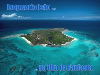 As crianças brincavam na ilha da Fantasia. Elas exploravam a ilha imaginária e se divertiam com suas brincadeiras.