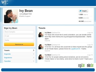 O documento discute a importância da acessibilidade na web para pessoas com deficiência. Ele aborda como a falta de acessibilidade pode excluir usuários e violar direitos humanos. O documento também fornece diretrizes e exemplos práticos de como tornar conteúdo web acessível de acordo com as WCAG.