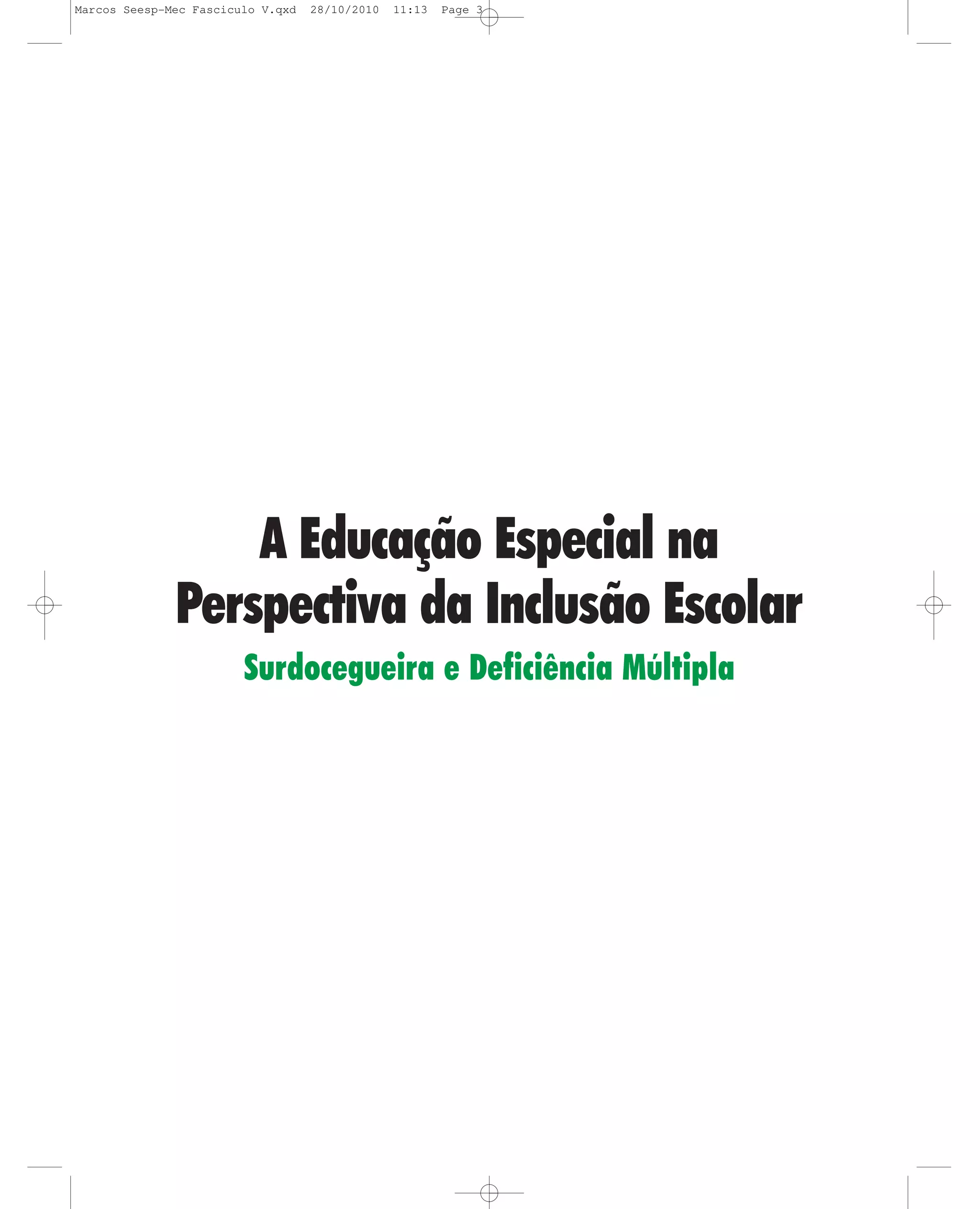 1. O documento discute a educação especial na perspectiva da inclusão escolar, focando em surdocegueira e deficiência múltipla.