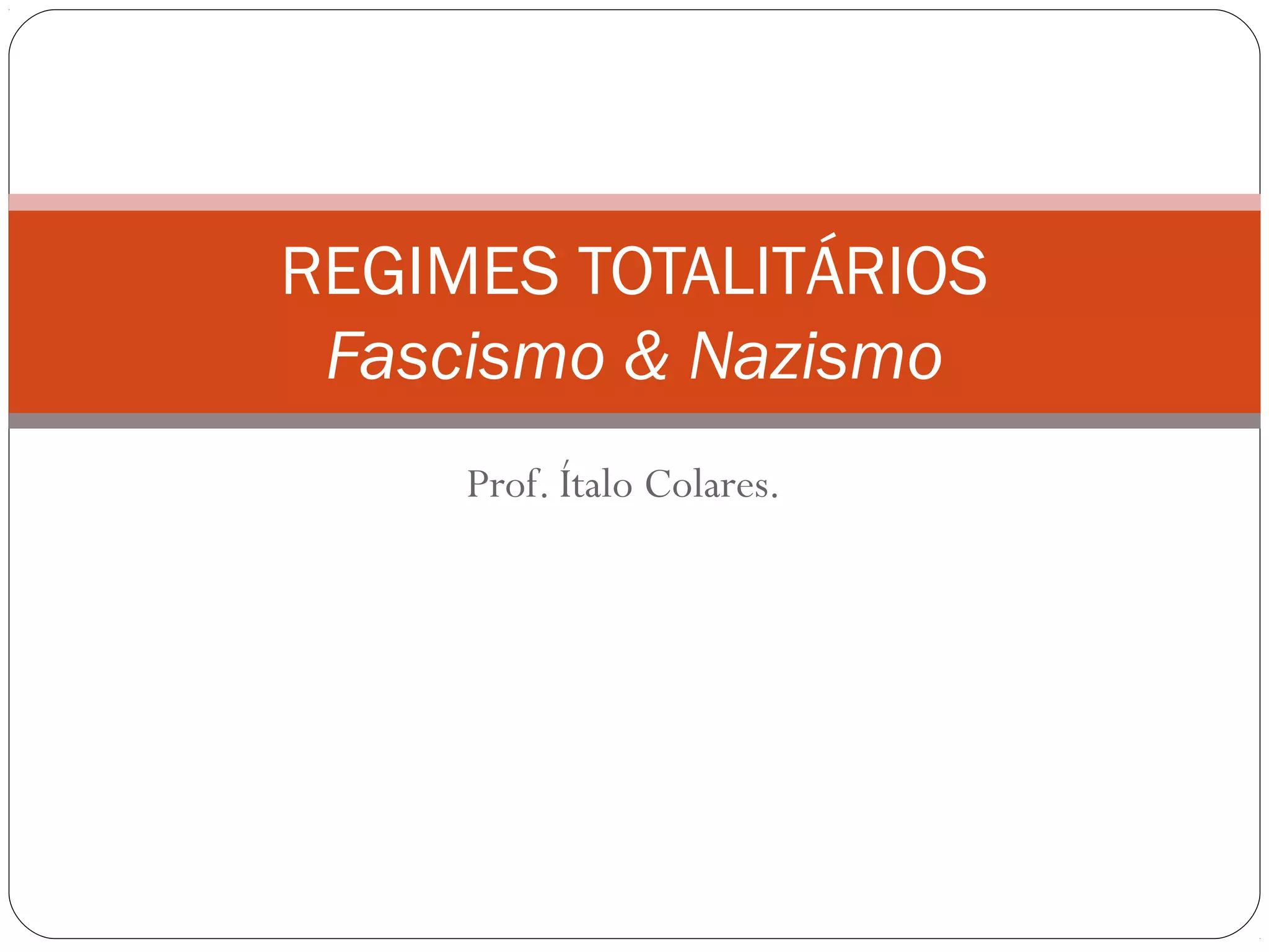 O documento descreve o avanço dos regimes totalitários na Europa após a Primeira Guerra Mundial, especificamente o fascismo na Itália sob Benito Mussolini e o nazismo na Alemanha sob Adolf Hitler. Essas ideologias compartilhavam características como o controle estatal totalitário sobre todos os aspectos da vida, a supressão da democracia e do pluralismo, e a perseguição de grupos considerados "inferiores".