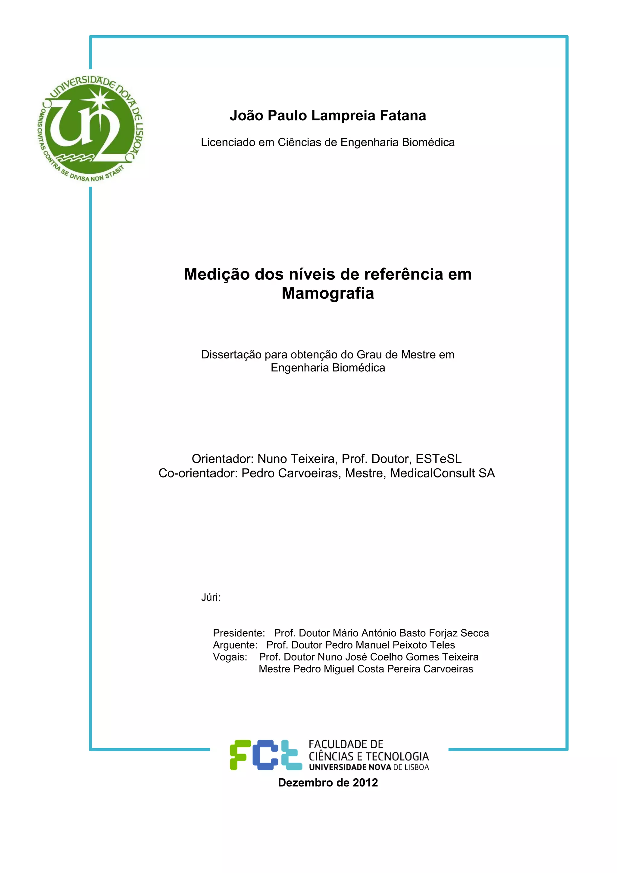 Esta dissertação avalia a dose de radiação em mamografia em Portugal. Foram medidos os níveis de radiação em 44 equipamentos de mamografia digital e determinados os valores médios e níveis de referência diagnóstica. Os resultados podem ser usados para orientar a otimização dos protocolos de mamografia.