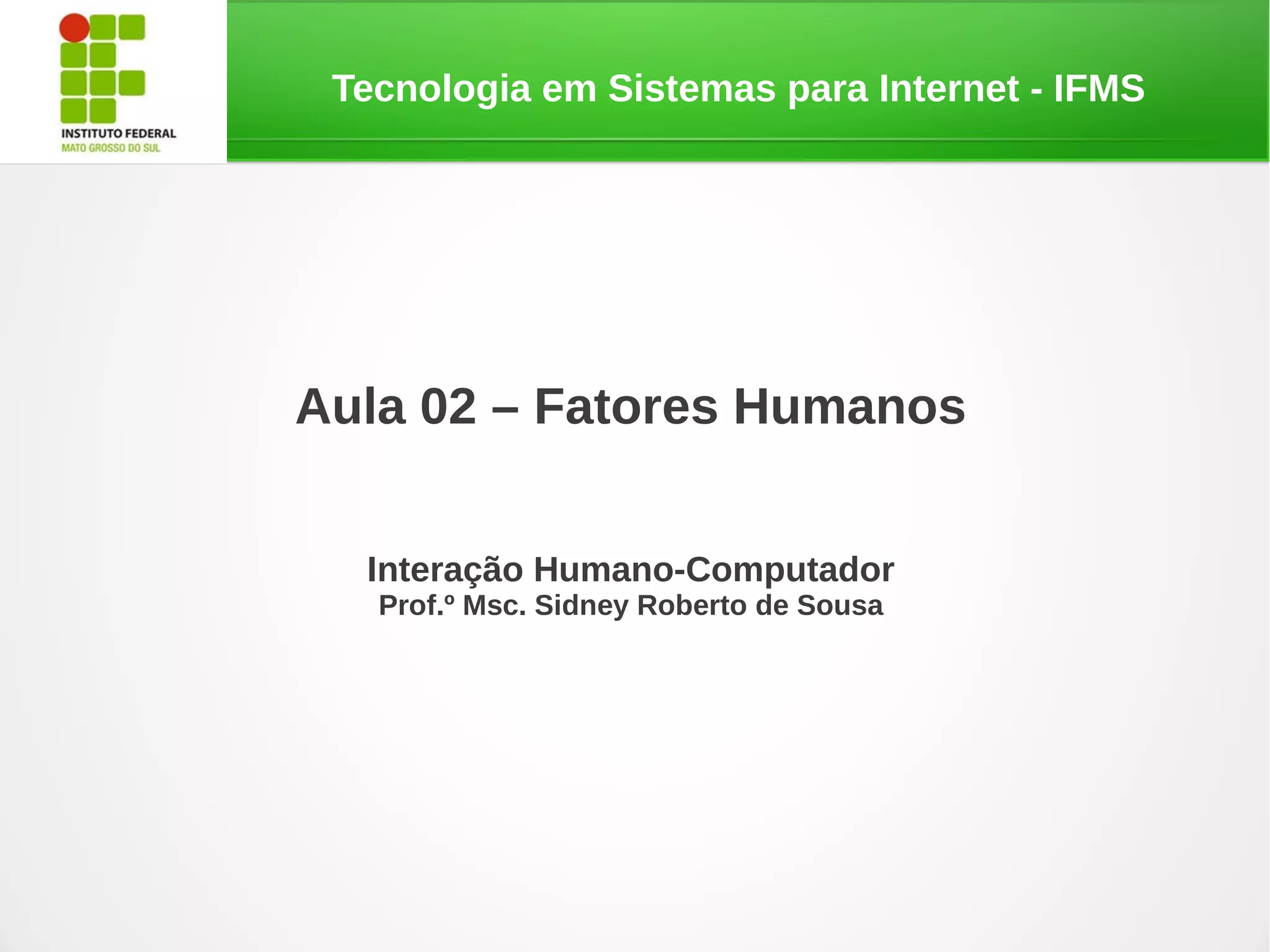 O documento discute os fatores humanos na interação humano-computador, especificamente: 1) a psicologia da interação, incluindo o modelo de processamento de informação humano; 2) como a percepção humana influencia a interação através de mecanismos como reconhecimento de padrões; e 3) os limites da percepção humana.