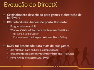 A palestra apresenta uma alta concentração de código em C/C++, abordando aspectos como rendering de vídeo 3D e experiências de usuário. O evento é conduzido por José Antonio 'Jalf' Leal de Farias do Stairs Game Studio, com várias demos exibindo técnicas de rendering. Links para recursos adicionais e contato também estão disponíveis.