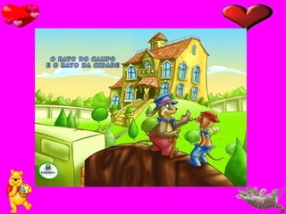 O Rato doCampo convidou o seu amigo da cidade para gozar durante alguns dias os bons ares do campo. O Rato da Cidade aceitou. Quando estavam a esgaravatar a terra à procura de comida, o Rato da Cidade disse ao amigo: