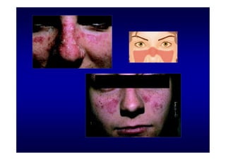 O documento discute o termo "fácies" na medicina, definindo-o como o aspecto da face modificada pela doença. Apresenta diversos exemplos de fácies características de diferentes doenças e enfatiza a importância de observar os traços constitucionais do paciente para evitar erros de diagnóstico. Também discute a obtenção e uso ético de imagens de pacientes para fins didáticos.