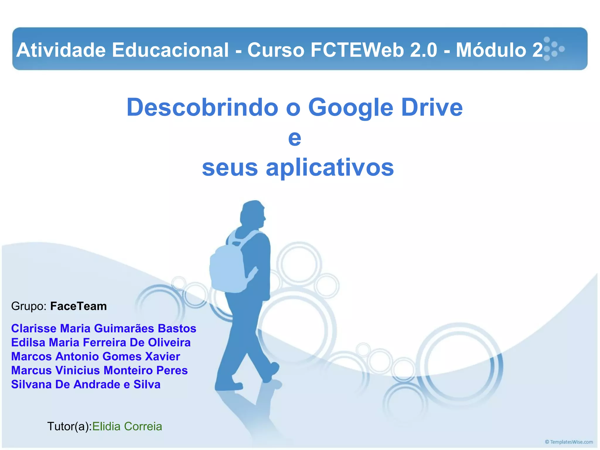 O documento apresenta uma proposta de atividade educacional sobre o Google Drive para alunos do ensino fundamental. O objetivo é reconhecer o Google Drive como uma ferramenta eficaz para atividades acadêmicas. A metodologia proposta divide os alunos em grupos para pesquisar sobre aspectos do Google Drive e apresentar os resultados no Facebook. A avaliação inclui a publicação do trabalho em grupo e comentários sobre as apresentações dos colegas.