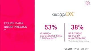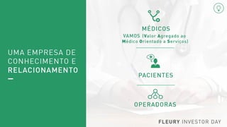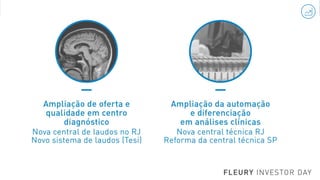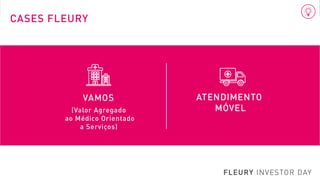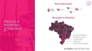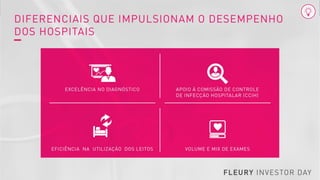 O documento apresenta os resultados financeiros da Capa Fleury nos últimos 6 meses, com gráficos mostrando a receita bruta e a receita bruta por metro quadrado. Os dados foram ajustados para excluir a receita das 5 unidades vendidas como parte de um acordo com o CADE. Também mostra o Retorno sobre Capital Investido ajustado da empresa sem considerar o ágio.