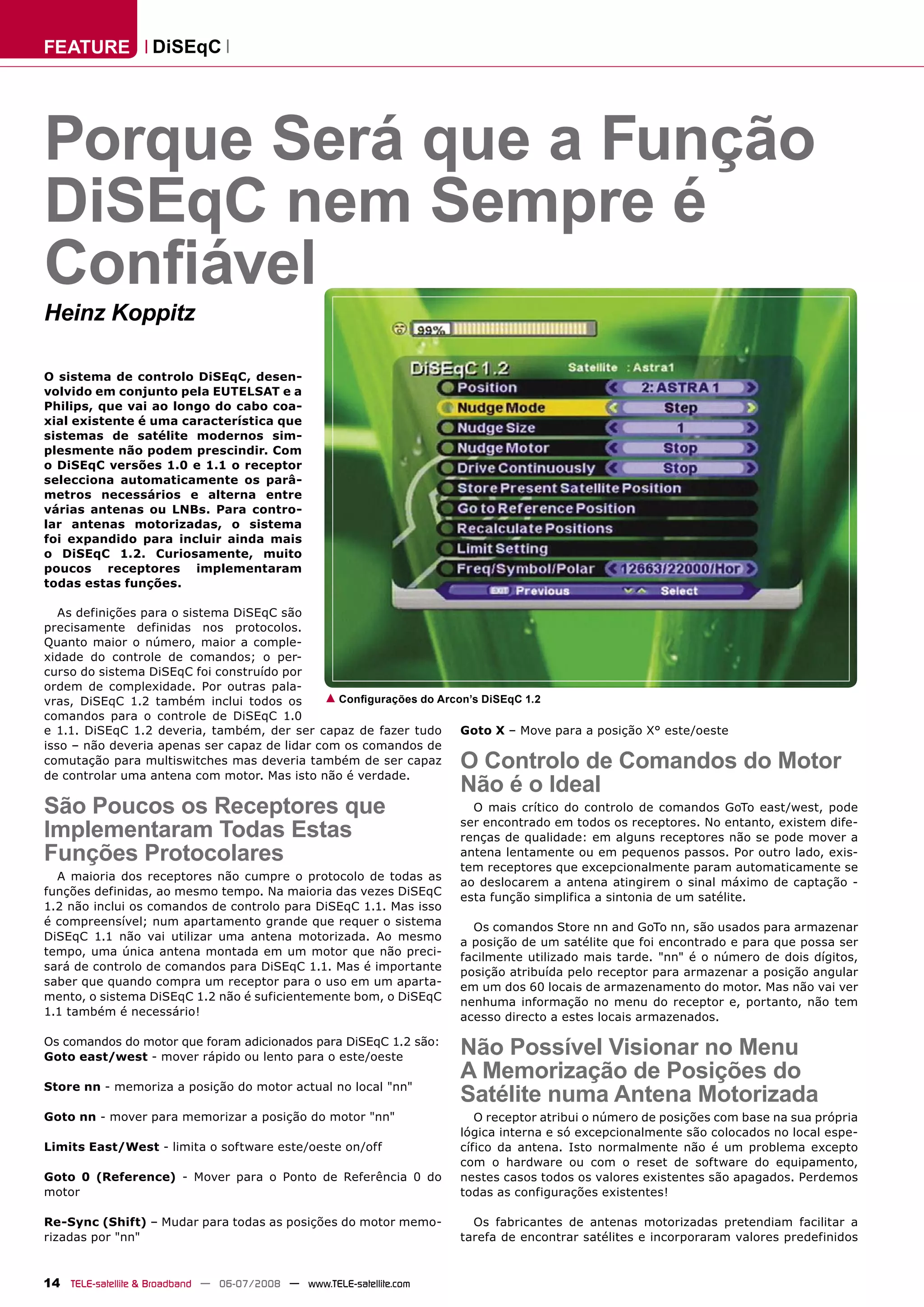 2. No entanto, poucos receptores implementam totalmente todas as funções do protocolo DiSEqC. A maioria não suporta todos os comandos de versões posteriores como 1.2.